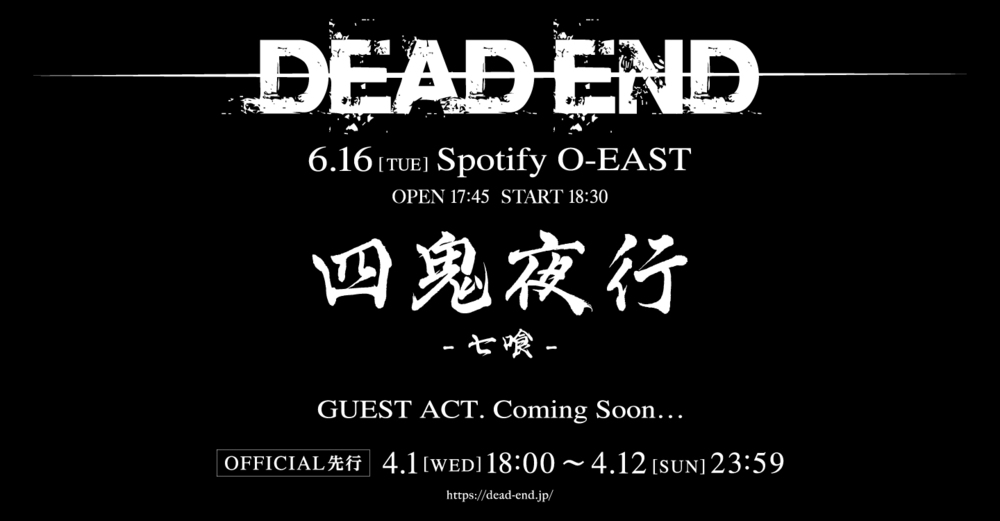 DEAD ENDが主催する「四鬼夜行」が、11年ぶりに開催決定!