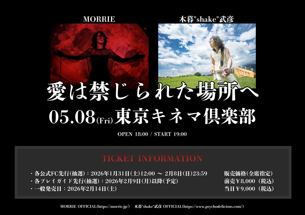 MORRIE / 木暮"shake"武彦 2MAN LIVE 「愛は禁じられた場所へ」
